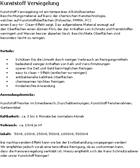 Kunststoff Versiegelung